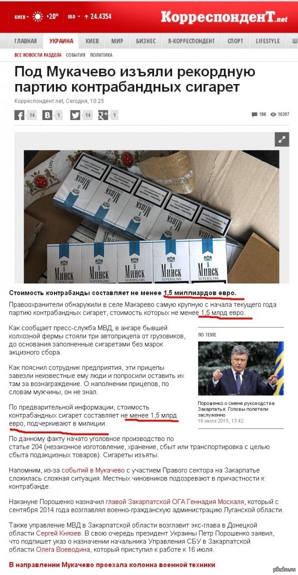это сколько же сигарет должно быть в этой партии? Пусть даже пачка стоит 1 евро, хотя в Украине пачка Мальборо стоит менее 1 доллара. Это сколько фур надо чтобы вывезти такое? Наверное не менее 2000 тыс, а скорее всего и того больше. Я конечно понимаю что Потроху надо кинуть кость правосекам, но с цифрами он явно перегнул, раз так в сто.