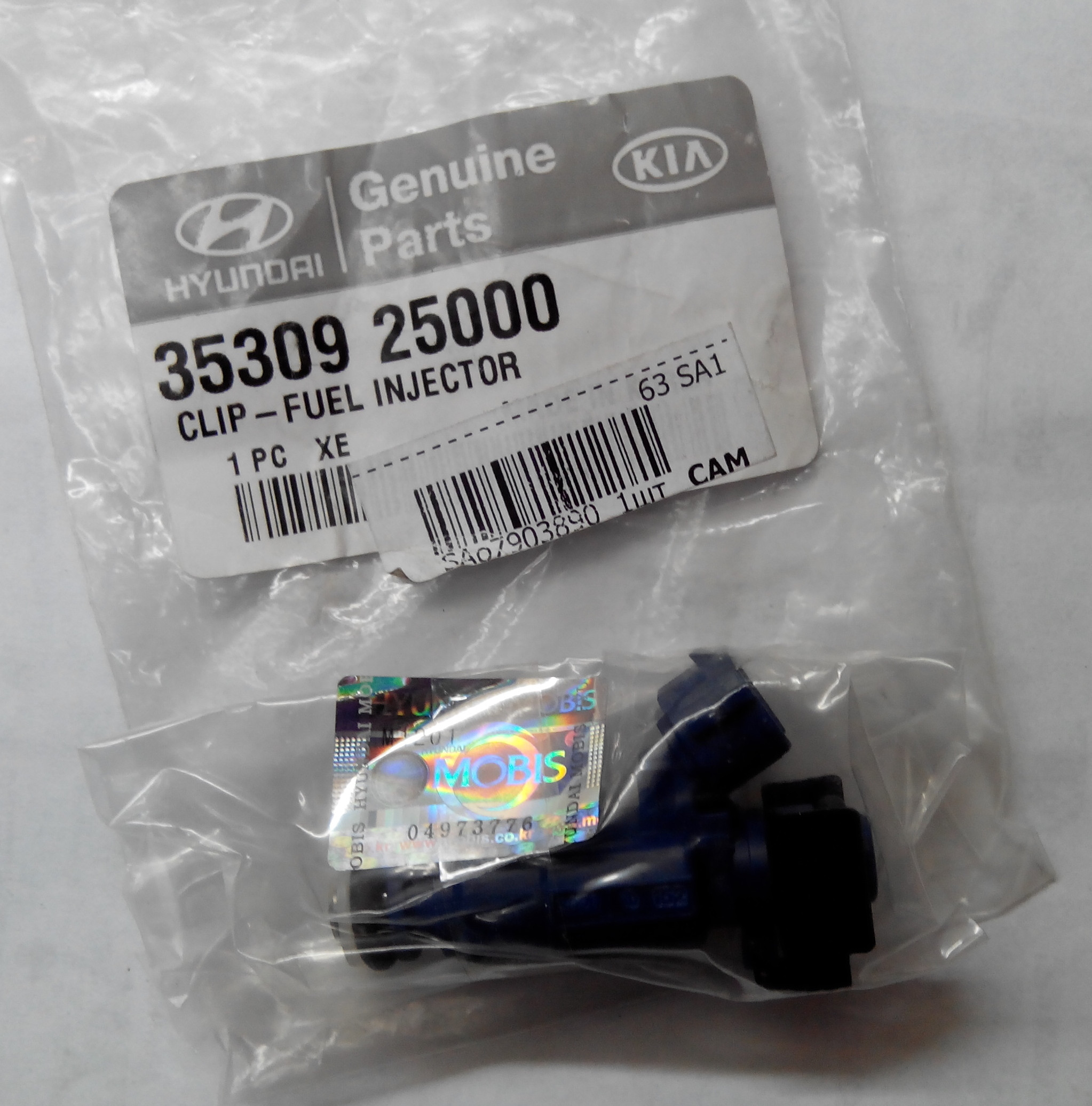 1. Топливная форсунка (P/N 353102B000) вместе с крепёжной скобой (P/N 3530925000 пакетик на фото от скобы, скоба одета на форсунку)