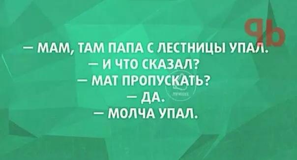 В полчетвертого утра жена засобиралась на утреннюю дойку, она на ферме заведующей работала. Вместе с ней и теща подскочила, а другану на работу к восьми, он еще лежит. Теща опять начала базлать, мол, доченька ее трудяга, а зять тунеядец. Жена ушла, друган встал. Сидит на кухне чай пьет, теща на повышенных тонах объясняет ему политику семейной жизни. И тут за окном петушок закукарекал. Друган делает зверскую рожу, хватает топор, и в загородь с курами. Хватает петуха, и хрясь по шее, полуфабрикат готов. Притащил на кухню, бросил в тазик. Городская теща от этого действа охренела. Орет, ты что же, мол, ирод, наделал! А он ей объясняет, что нервы ни к черту стали, громких криков не переносит. Тут следующий петух закукарекал. Друган опять делает зверское лицо и с криком — НУ, МАТЬ ТВОЮ!!! вылетает во двор и повторяет процедуру. Хрясь, и следующий петушок уже полуфабрикат. Теща уже не возмущалась, и смотрела на зятя как-то косо. Тут третий закукарекал. Все повторилось. Теща до самого ухода зятя молчала как рыба. Пришел он на обед. Жена петушков ощипала и суп варит. Когда тещи на кухне не было, она его и спрашивает: — ТЫ, МОЛ, НЕ ЗНАЕШЬ, КОЛЯ, ПОЧЕМУ НАША МАМА ШЕПОТОМ РАЗГОВАРИВАЕТ?..