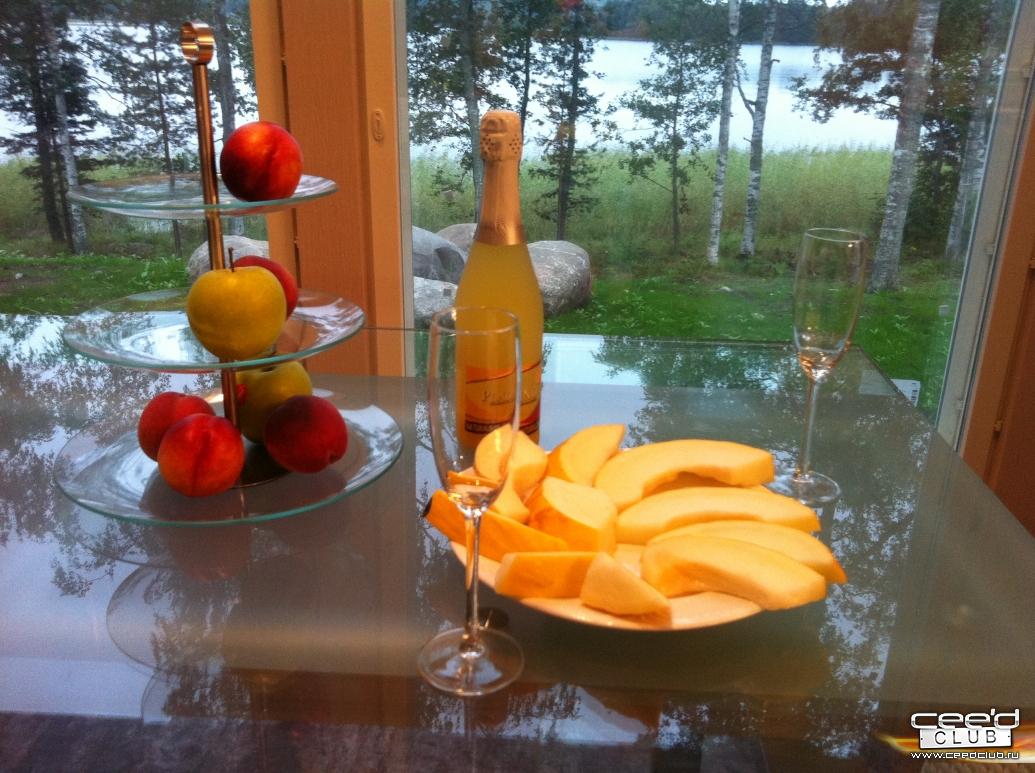 Хороший натюрморт! Южный теплый передний план. Персик, дынька. И северная природа на бэкграунде. Светлая, позитивная фотография. 5! |