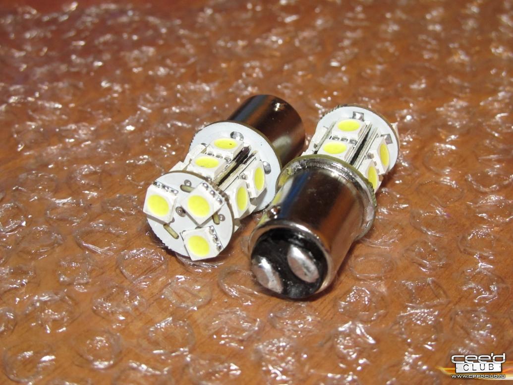 Эти конкретно светят холодным белым, поэтому вперемешку с красным стеклом получается чуть сжелта, не очень понравилось. Да и яркость меньше, чем у родных ламп на 21 cd. Зато днем видно лучше, наверное из-за монохромности свечения диодов. Попробую еще заказать теплый белый, может он по-интереснее будет светить. А эти в поворотники задине поставлю. |