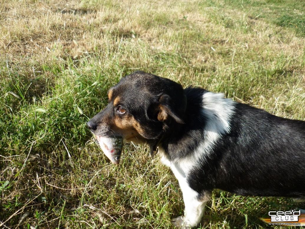 блин я смотрю у вас с рыбалкой вообще прёт , хозяин сазанов таскает , собака тоже не спустым ходит |