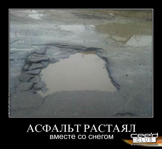 заметил, стало чуть таять, тк на ровных уч дороги начали образовываться дыры..( не совсем старый асфальт.. |